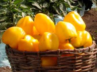 Куст полураскидистый, высотой 50-70 см, с полуштамбовым ветвлением, среднеоблиствённый. Листья крупные, тёмно-зелёные, удлинённо-яйцевидной формы. Плод сердцевидной, удлинённо-округлой формы, с 3-4 семенными камерами, с немного оттянутой вершиной, гладкий, слаборебристый. Вдавленность плодоножки в плод слабая. Масса плода 150-220 г. Толщина стенки 8 мм. Окраска зрелых плодов золотисто-жёлтая, незрелых – зелёная. Плоды плотные, транспортабельные.